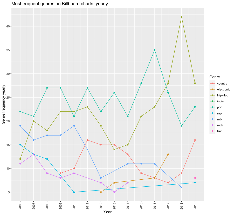 It may come as no surprise that there are a few dominant genres that top the charts constantly, after all this is the Hot 100 chart and mainstream genres are well… mainstream. Check out the following analysis of the Billboard Year-End Hot 100 charts from 2006 to 2019 and how our music taste has evolved.